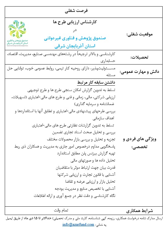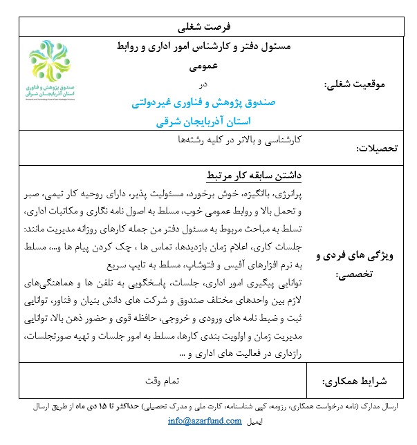 استخدام مسئول دفتر وکارشناس امور اداری و روابط عمومی